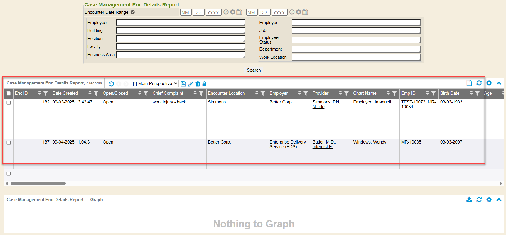 Case Management Enc Details Report - Graph section